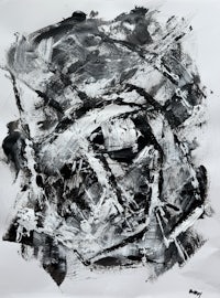 Each painting in the series stands apart, reflecting the diversity and complexity of these questions. Some paintings lean heavily into black, others into white, and some into gray, embodying the spectrum of possibilities. They exhibit dynamic movement, palpable tension, and a raw energy that underscores the internal struggles we all face. Each piece possesses its own unique rawness, amplifying the emotional resonance and individuality of the work.